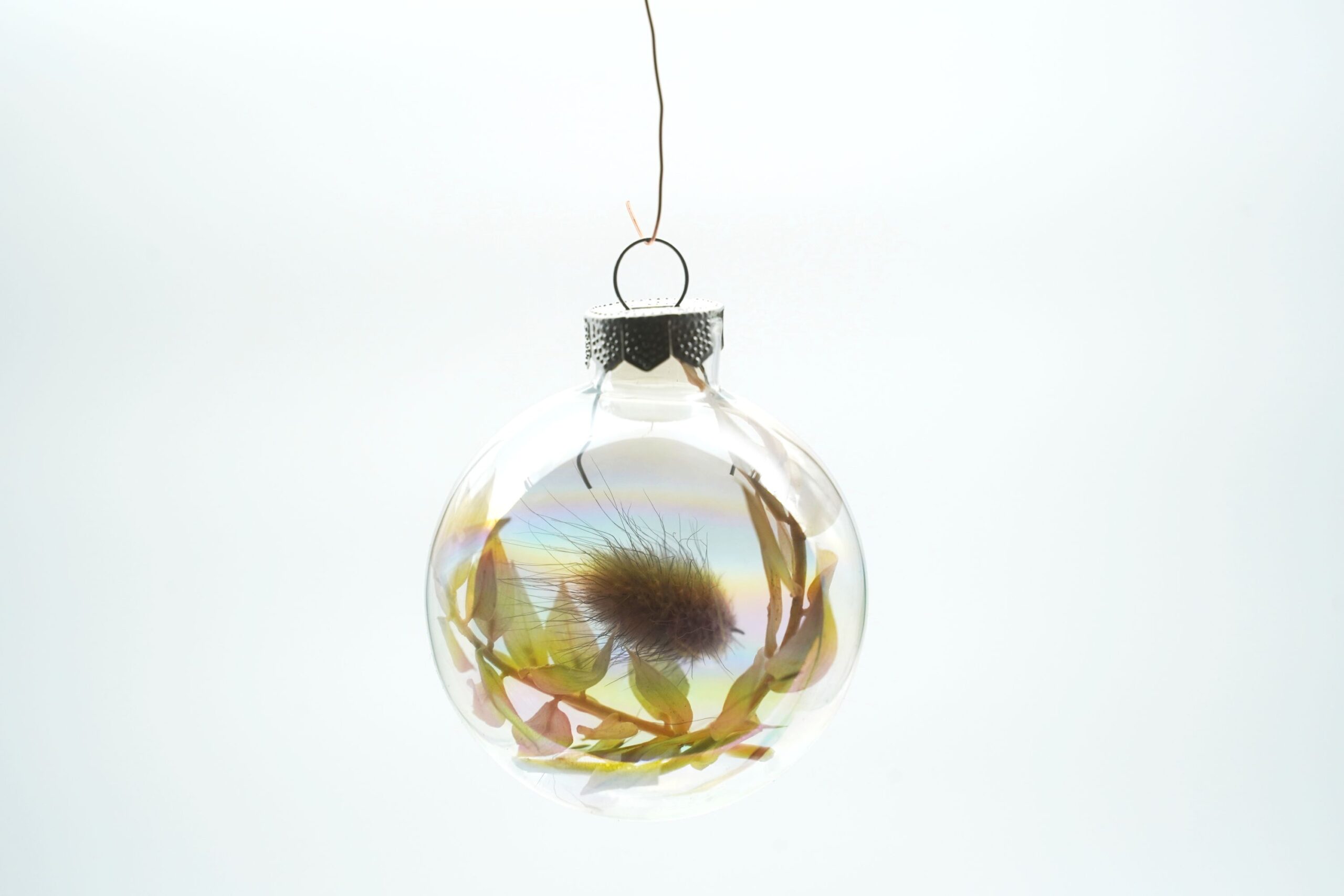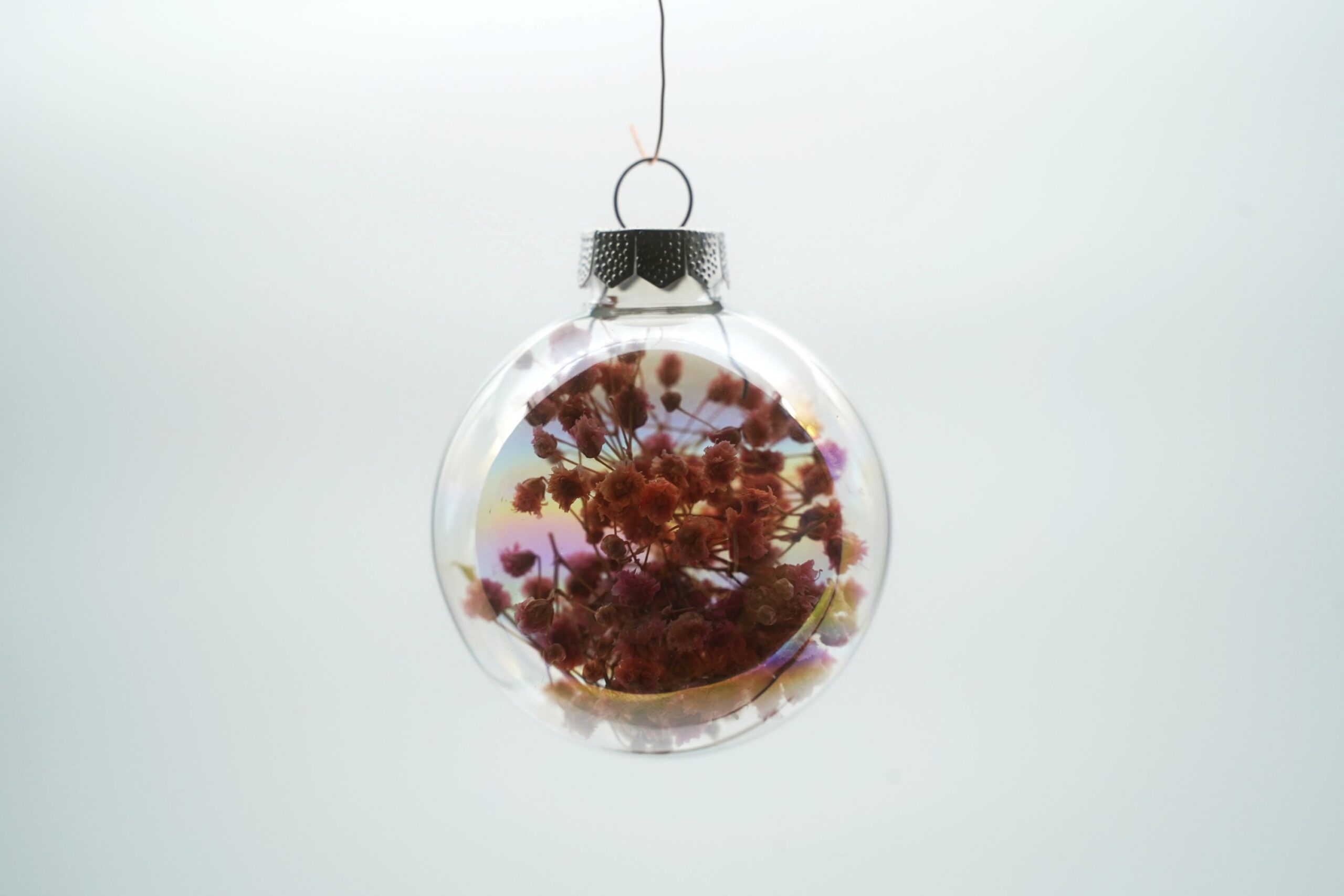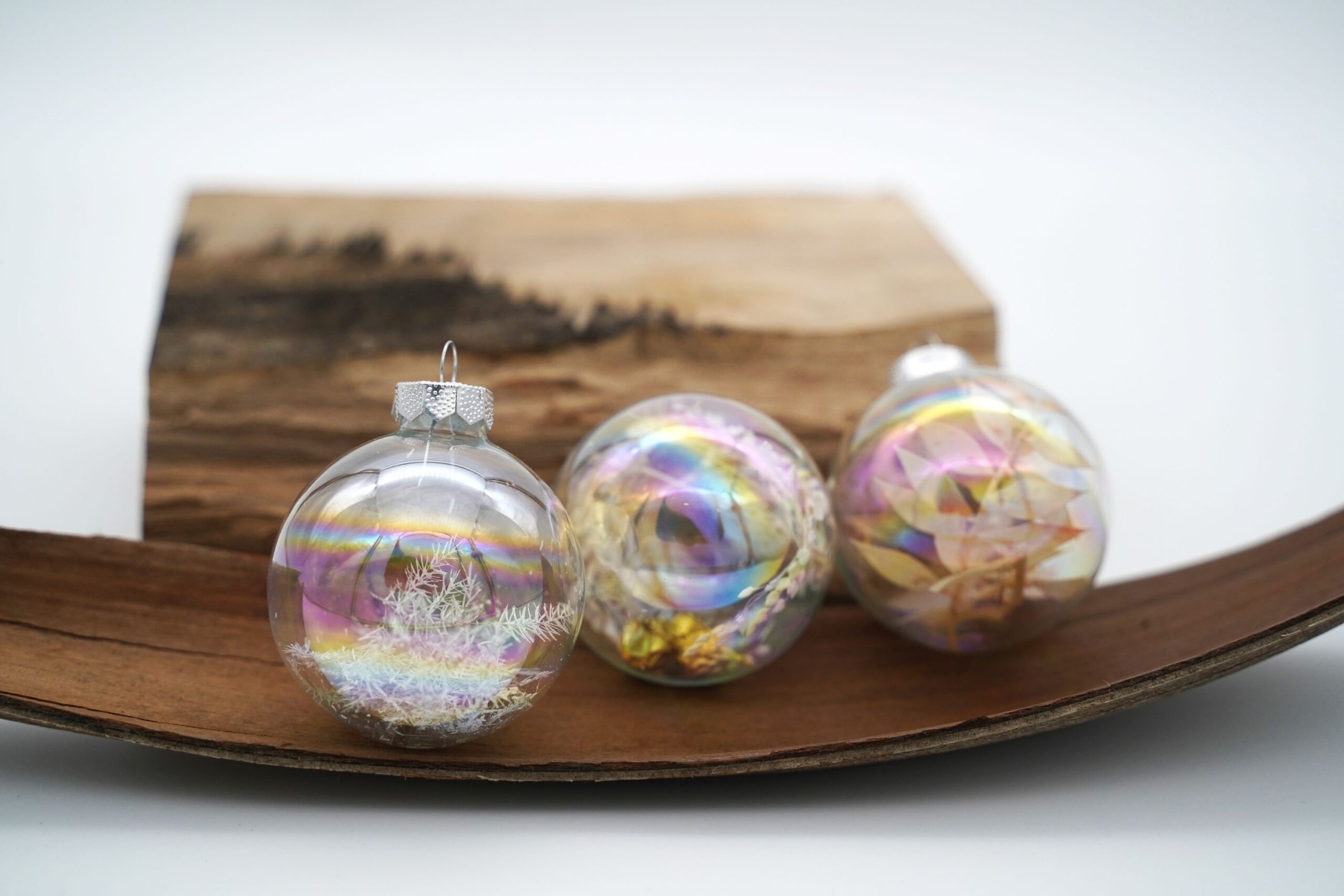 Verwendetes Material: Glaskugeln mit Trockenblumen