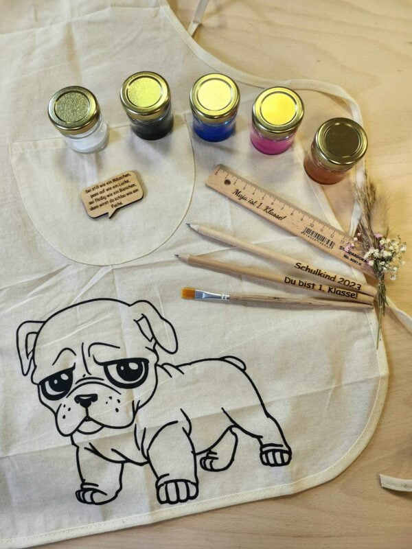 1.Eine Schürze mit Motiv und Farben zum selbst gestalten. (Anleitung liebt bei)