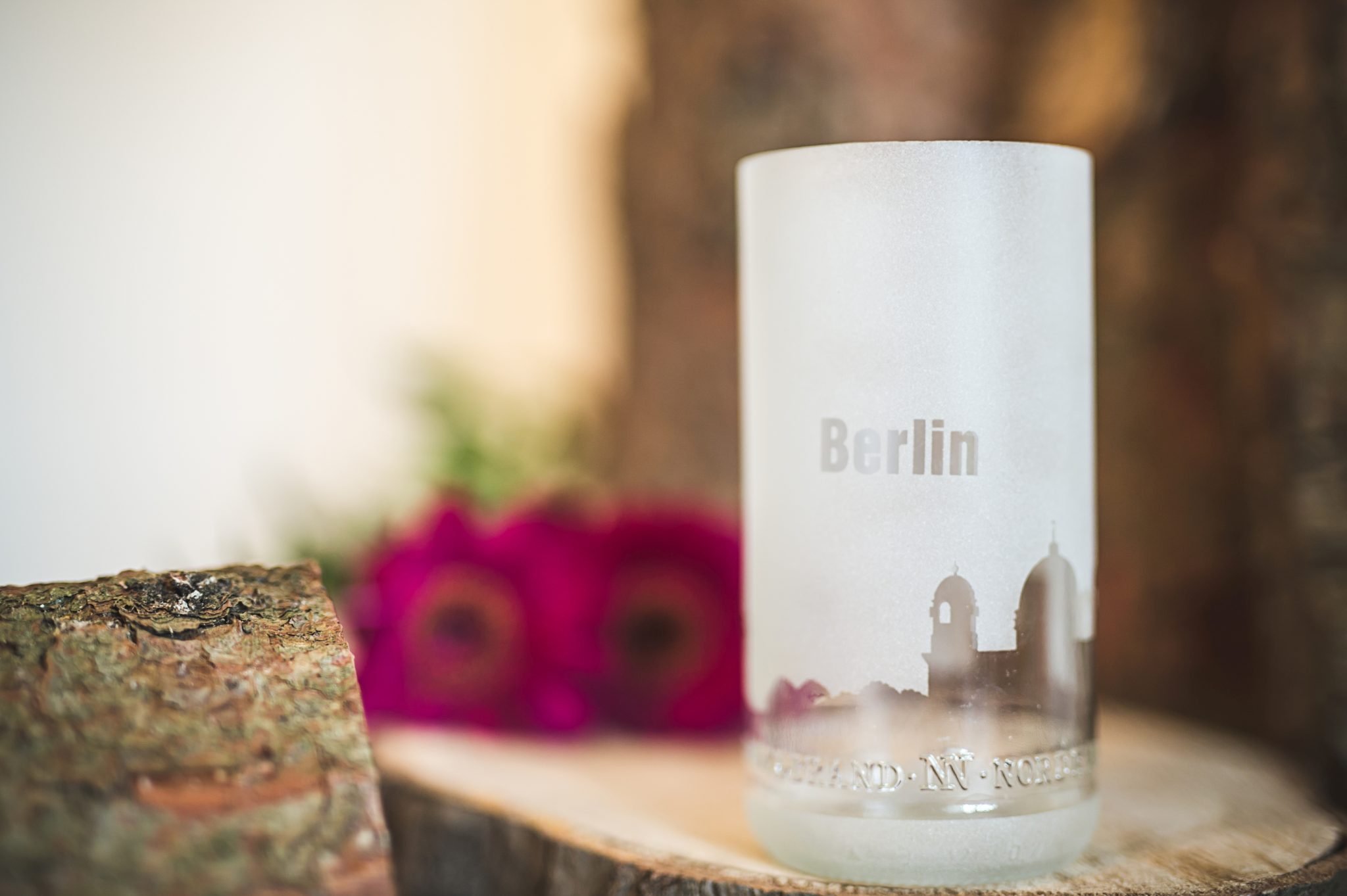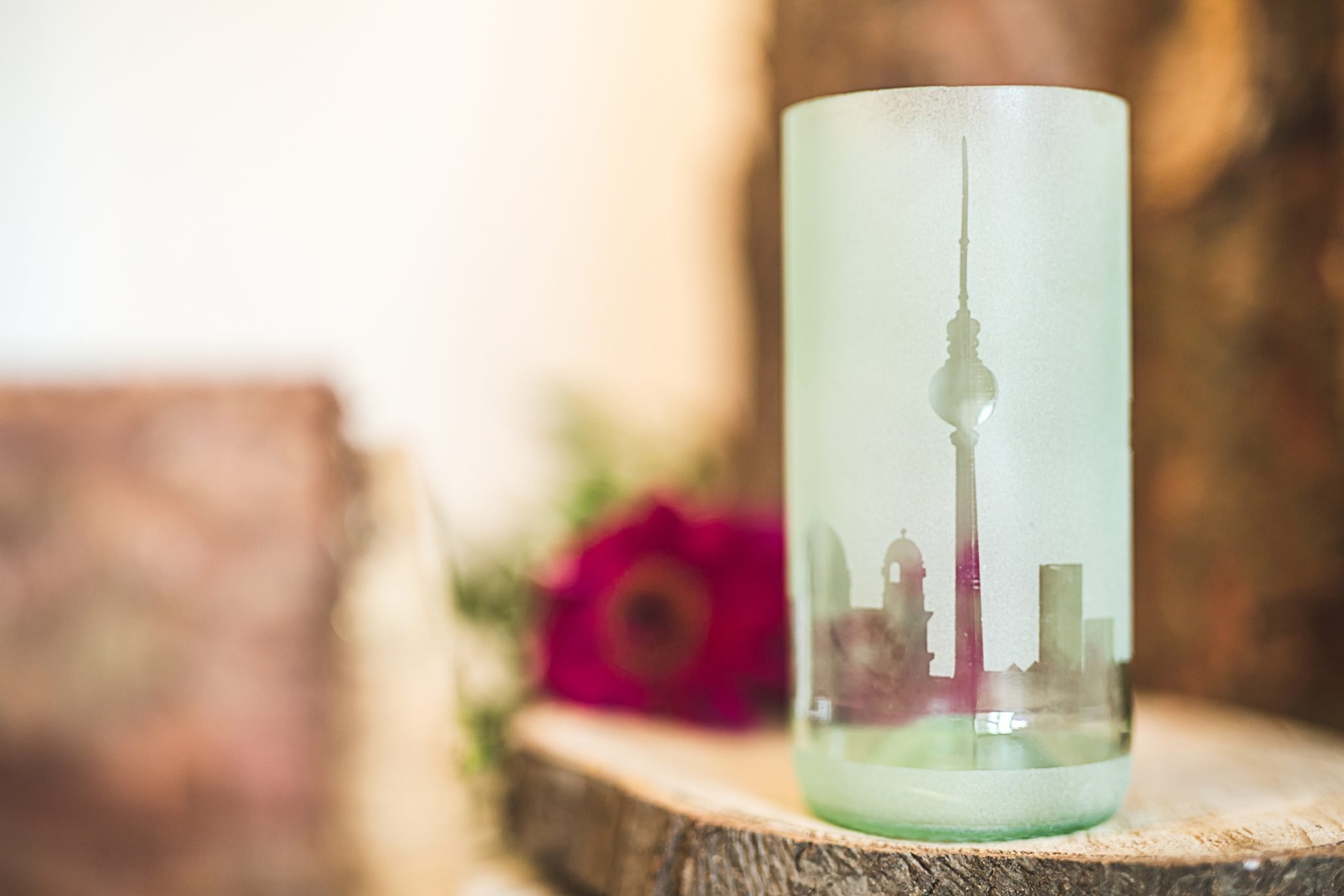 Handgefertigt aus recycelten Glasflaschen sind diese Windlichter ein echter Blickfang.Den Flaschen wird fachgerecht der Hals entfernt, die Kanten geschliffen und mit der Skyline deiner Lieblingsstadt versehen.