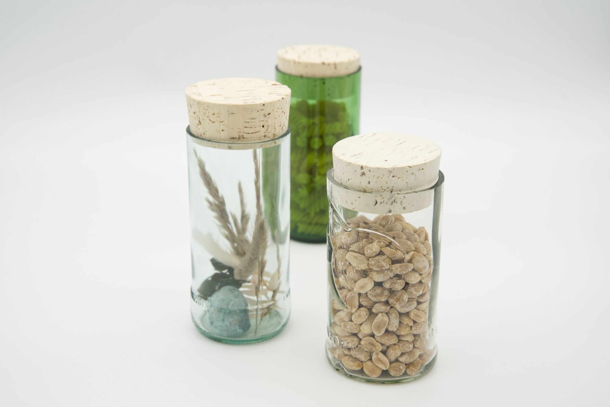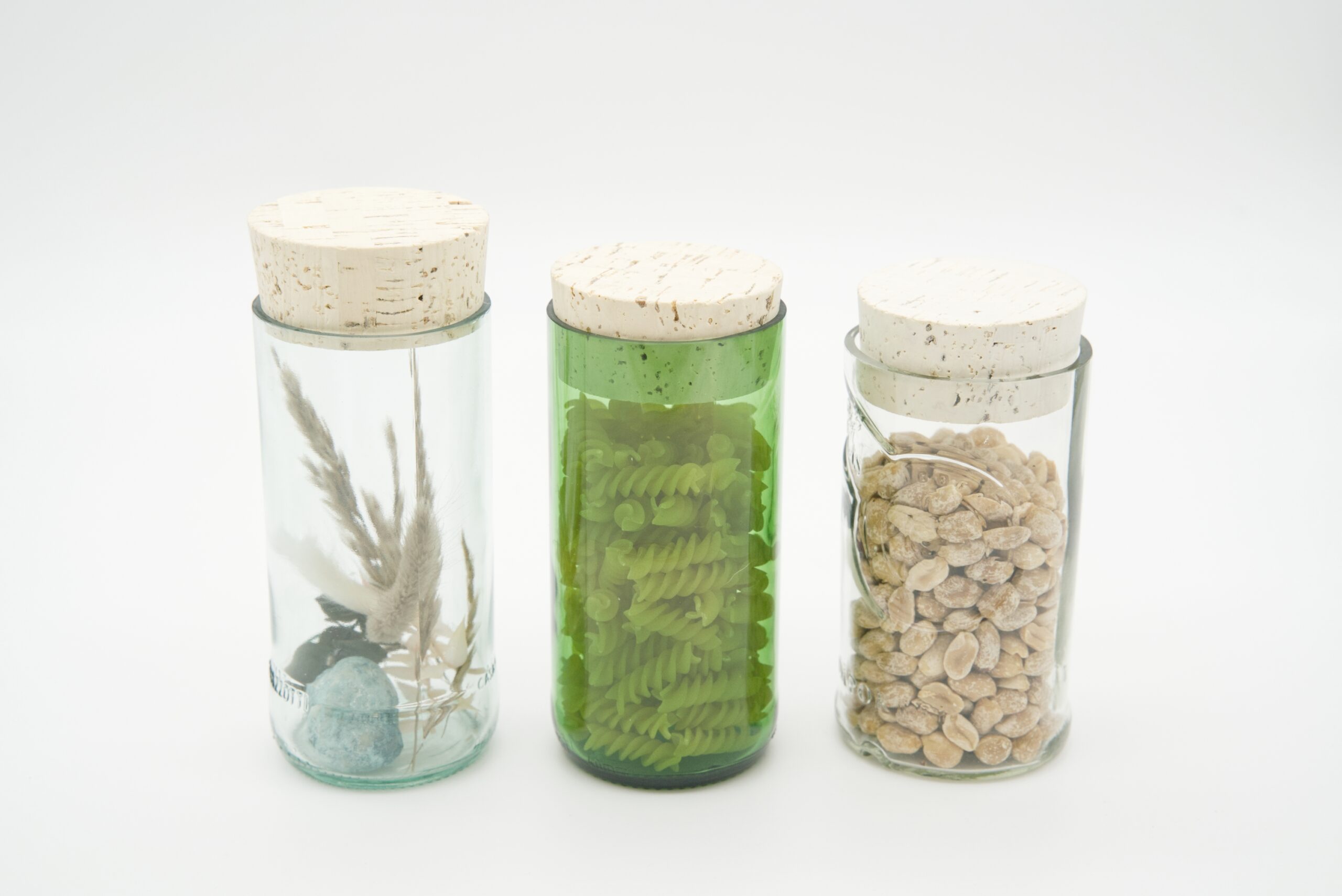 Diese Utensilos werden aus alten Flaschen gefertigt. Als Verschluss dient eine Korken.