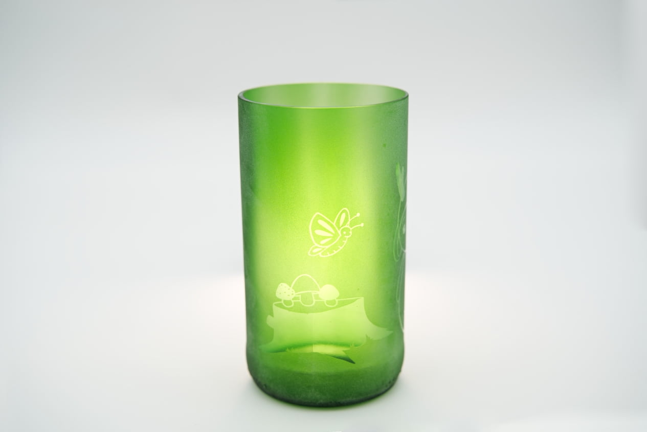 Sabrina verliebte sich in unsere Kerzengläser und in den Gedanken, dass bei uns wirklich alles recycelt und mit verstand nachhaltig produziert ist. Während wir die ganze Zeit füreinander schwärmten, kam uns die Idee für eine kreative Zusammenarbeit. So entstand eine Freundschaftliche Kooperation, zauberhafter Waldgnom trifft auf liebevoll, handgefertigtes Kerzengläser aus recycelten Flaschen.